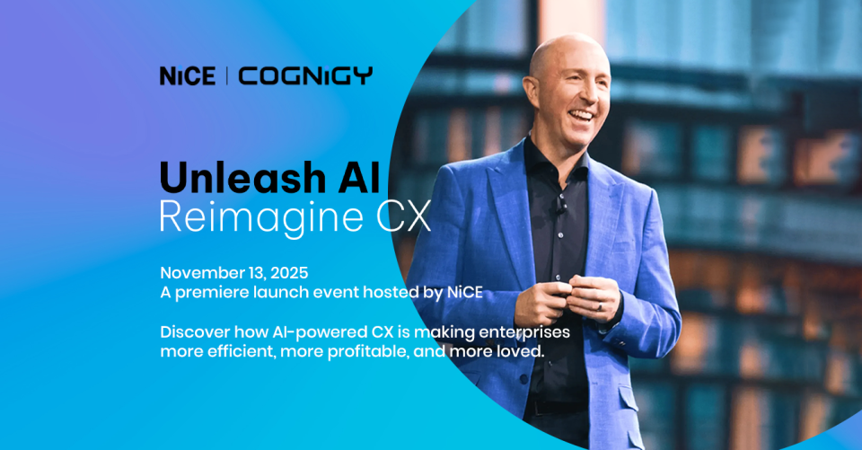 November 13, 2025 A premiere launch event hosted by NiCE Discover how AI‑powered CX is making enterprises more efficient, more profitable, and more loved.