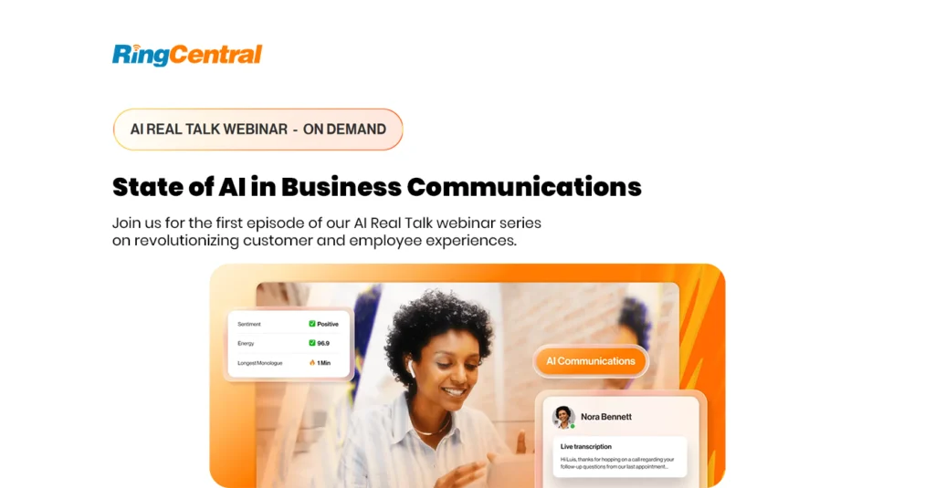 Join us for an insightful discussion on how businesses are harnessing AI to transform both employee and customer experiences. Learn from Robin Gareiss, CEO and Principal Analyst at Metrigy, about AI’s real world impact on business communications together with RingCentral experts on how AI is improving work efficiency, and reducing time required in addressing customer needs. Leverage the insights to gain practical advice on introducing, deploying, and measuring AI effectiveness within your organization.